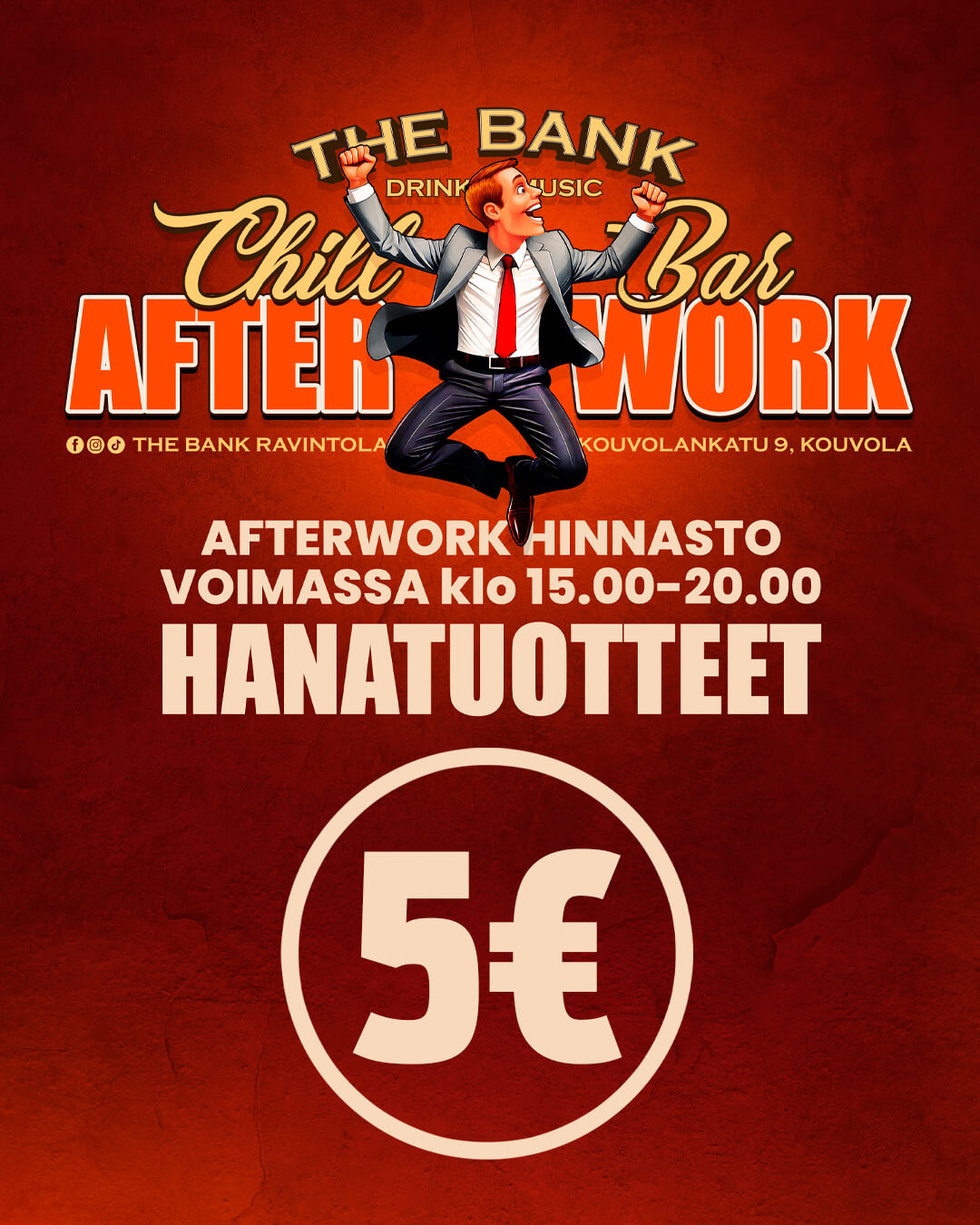 Kouvolan iloisin “pankki” on kohtaamispaikka keskellä kaupunkia! Hyvän mielen tyyssija ja rennosti kotoisa kuppila palvelee sinua ja ystäviäsi aamun pikkutunneille saakka.